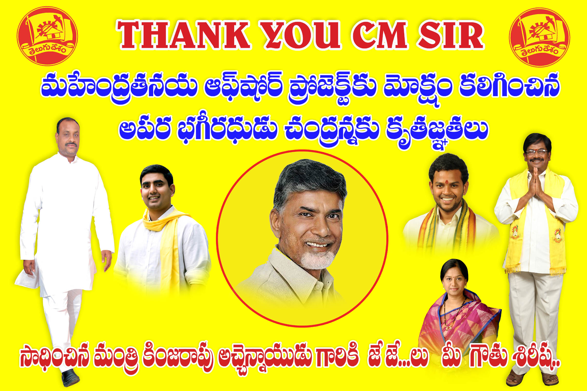 మా కుటుంబ సన్నిహితుడు,శ్రీకాకుళం జిల్లా శ్రేయోభిలాషి మంత్రివర్యులు శ్రీ కింజరాపు అచ్చన్నాయిడ్డు గారికి హృదయపూర్వక శుభాభినందనలు.పలాస నియోజకవర్గ సాగు నీరు త్రాగు నీరు శాశ్వత పరిష్కారంగా మహేంద్ర తనయ ఆఫ్షోర్ ప్రాజెక్ట్ సాధించాలని దీక్ష పట్టిన మా మామగారు పలాస శాసన సభ్యులు గౌతు శివాజీ గార్కి అడుగు అడుగున వెంట నిలిచిన మంత్రి గారికి నమస్కారాములు. THANK YOU CM SIR,చంద్రన్న కు జేజేలు
