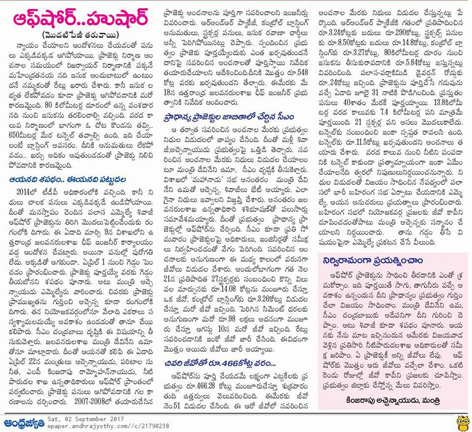 మా కుటుంబ సన్నిహితుడు,శ్రీకాకుళం జిల్లా శ్రేయోభిలాషి మంత్రివర్యులు శ్రీ కింజరాపు అచ్చన్నాయిడ్డు గారికి హృదయపూర్వక శుభాభినందనలు.పలాస నియోజకవర్గ సాగు నీరు త్రాగు నీరు శాశ్వత పరిష్కారంగా మహేంద్ర తనయ ఆఫ్షోర్ ప్రాజెక్ట్ సాధించాలని దీక్ష పట్టిన మా మామగారు పలాస శాసన సభ్యులు గౌతు శివాజీ గార్కి అడుగు అడుగున వెంట నిలిచిన మంత్రి గారికి నమస్కారాములు. THANK YOU CM SIR,చంద్రన్న కు జేజేలు