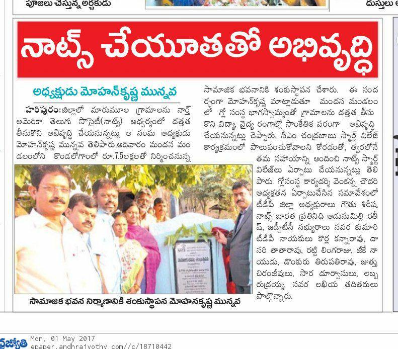 నార్త్ అమెరికా తెలుగు సంఘం (నాట్స్) NATS మరియు గౌతు లచ్చన్న బలహీన వర్గాల సంస్థ (గ్లో) సంయుక్తంగా ఉత్తరాంధ్ర జిల్లాలో పలు కార్యక్రమాలు చేపడుతున్న విషయం విదితమే.అందులో భాగంగా శ్రీకాకుళం జిల్లా మందస మండలం గిరిజన గ్రామమైన కొండలోగం లో సామాజిక భవనం నకు శంకుస్థాపన జరిగింది.ఈ కార్యక్రమానికి ప్రత్యేకంగా నాట్స్ అధ్యక్షులు మోహాన్ కృష్ణ మన్నవ రావడం జరిగింది.