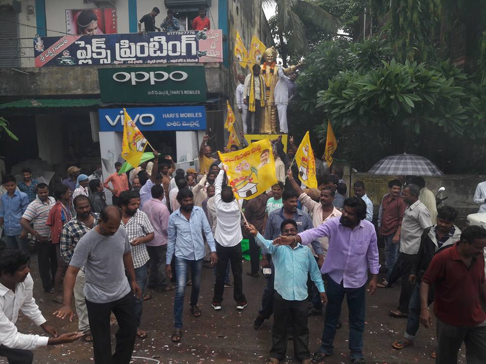 నంద్యాలలో టీడీపీ ఘనవిజయం సాధించిన సందర్భంగా పలాస లో బాణసంచా కలుస్తూ మిఠాయిలు పంచుతూ సంబరాలు జరుపుకుంటున్న టీడీపీ కార్యకర్తలు ఈ కార్యక్రమంలో నియోజకవర్గ ముఖ్య నాయకులు పాల్గొన్నారు. జై తెలుగుదేశం....